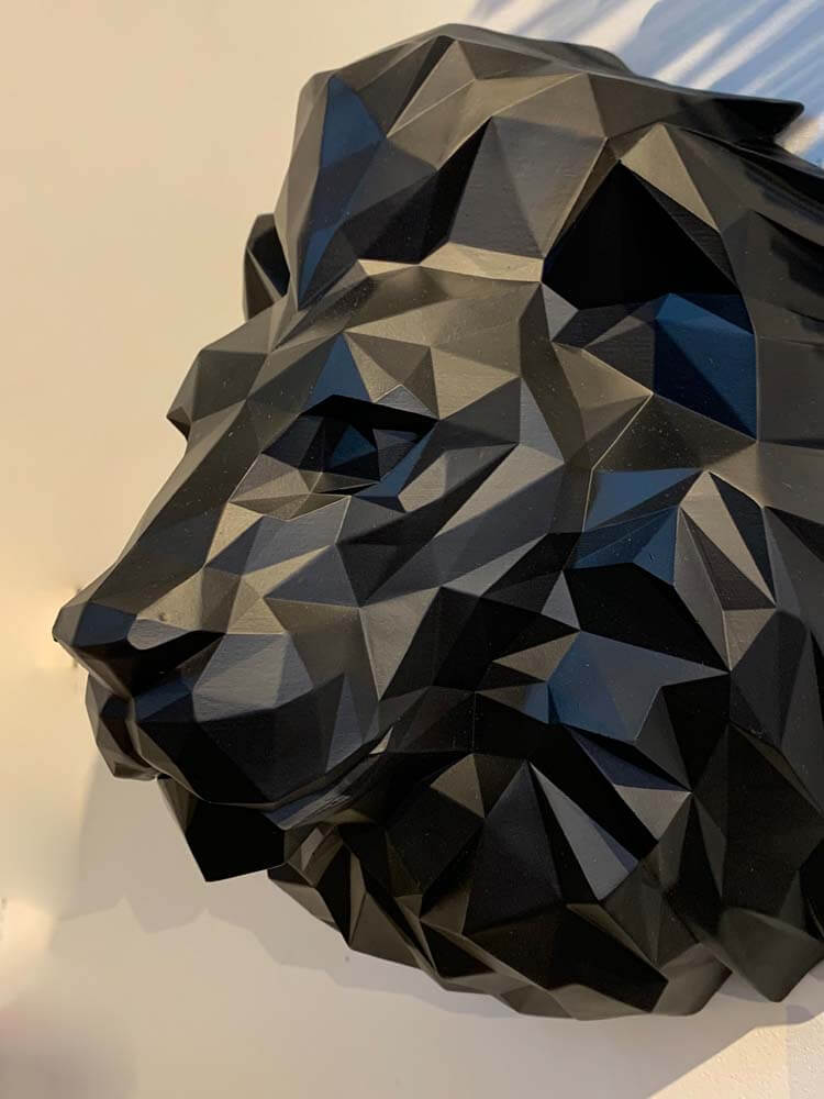 Black Geometric Lion Wall Head – Lion wall mount black, Modern Origami Style lion head