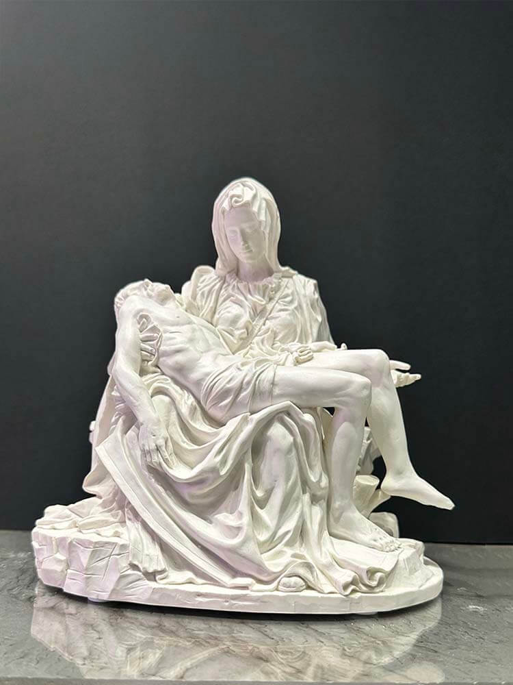 • The Pietà: Virgin Mary cradling the dead body of Jesus after his body was removed from the cross by Michelangelo