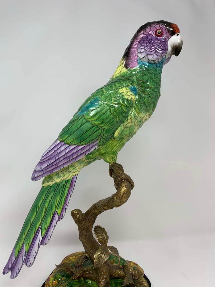 • Beautifully hand-crafted glazed porcelain parrot figurine handmade in bronze
