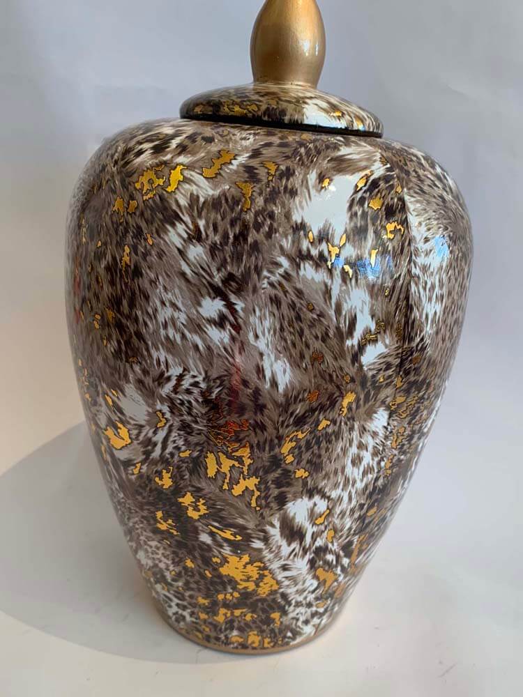 • Leopard print design handcrafted decorative vase/ jar with lid