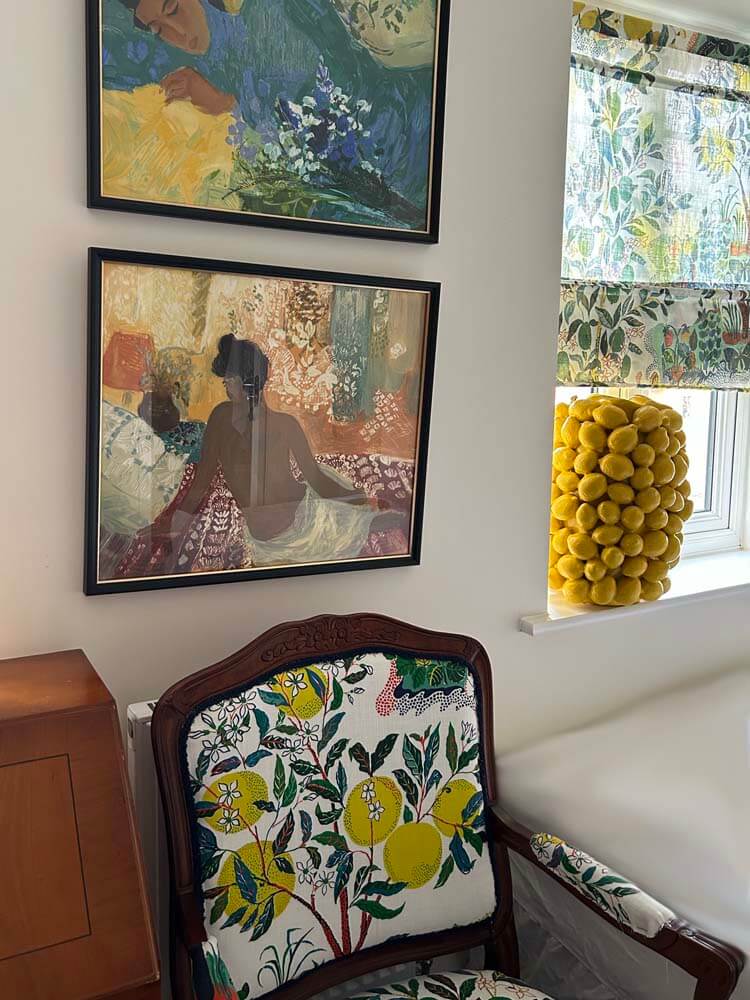 A Mediterranean House –  Schumacher Citrus Garden Fabric – 1947 Josef Frank pattern on sheer linen-blend, double-width, railroaded, vibrant, whimsical, and perfect for drapery.